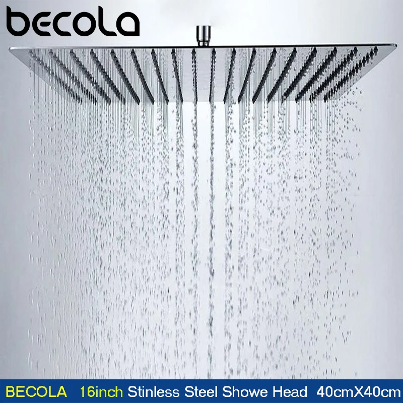 ORIGINAL BECOLA 16Inch 40cmX40cm square stainless steel ultra-thin shower heads Bathroom square overhead rai