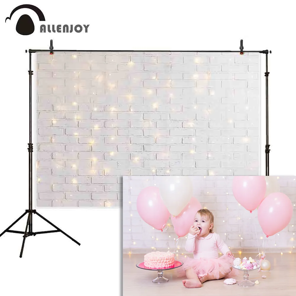 Allenjoy photography backdrop bokeh white glitter brick wall baby shower background photocall photo