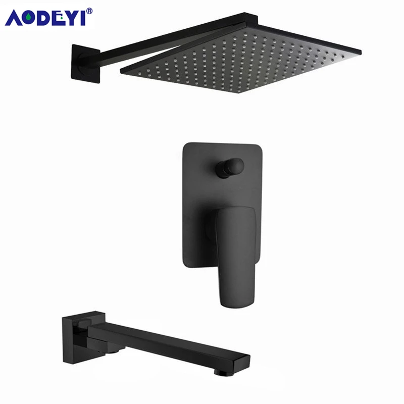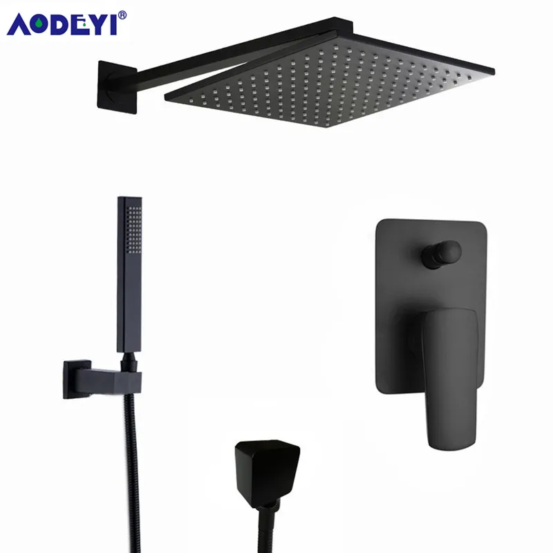 AODEYI Premium Quality Brass Black Shower Set Bathroom 8" Rain Shower Head Faucet Shower Spout Dive